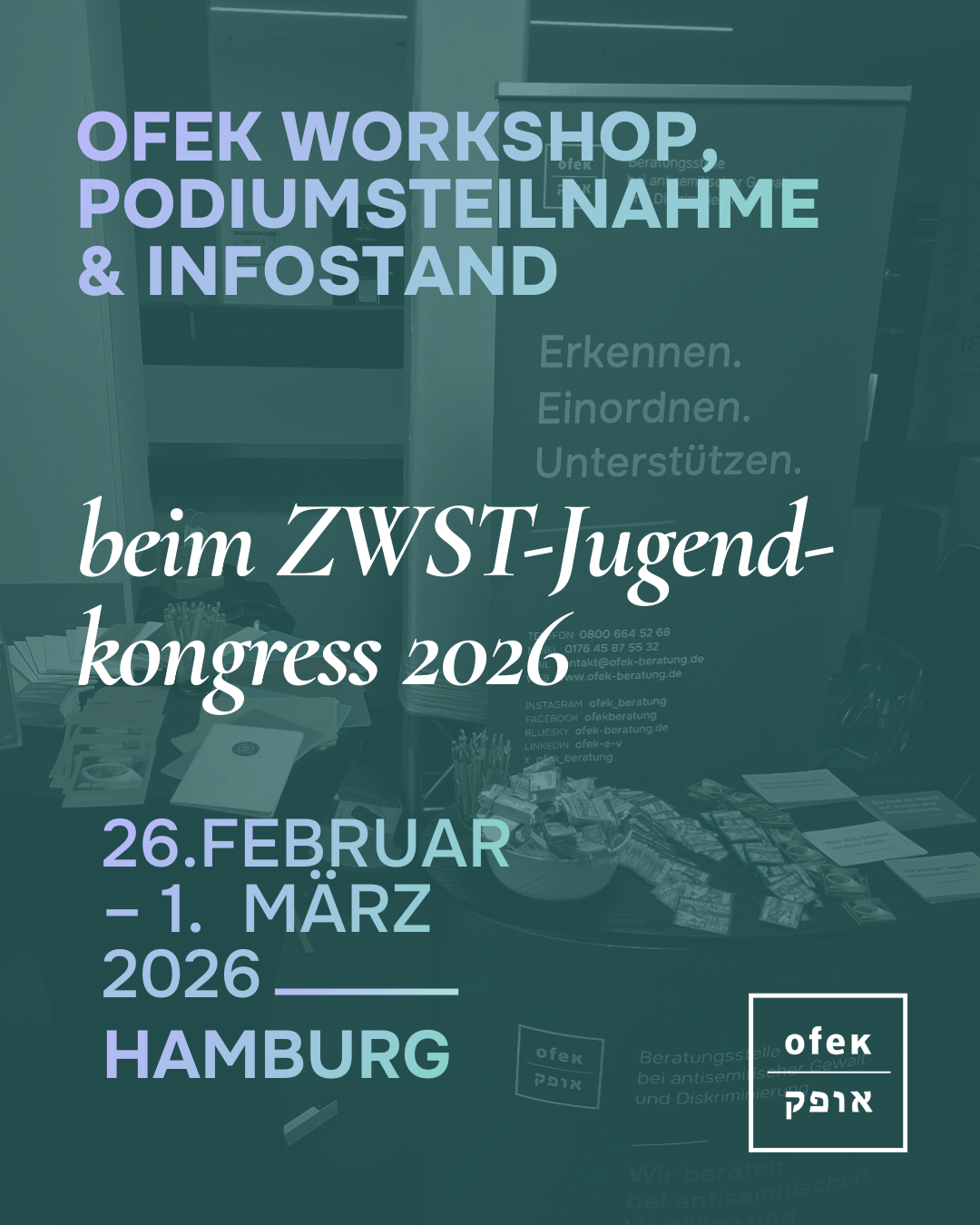 Gemeinsam mit der Zentralwohlfahrtsstelle der Juden in Deutschland (ZWST) trägt OFEK die hebräischsprachige Unterstützungshotline MATAN.